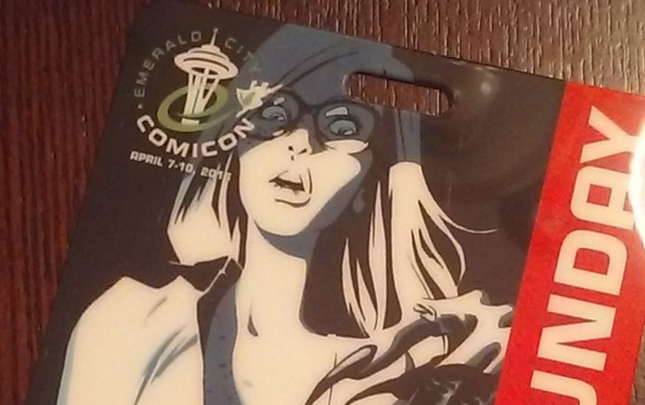 If you’re attending Emerald City Comic Con on Sunday and have a single day only badge, you may have noticed some unsettling art on the badge itself. It depicts a particularly scared woman whose shirt is being opened by a decidedly creepy hand. Folks have tweeted their unhappiness with the art, asking why an image of a woman being sexually assaulted was being presented on a comic convention badge.