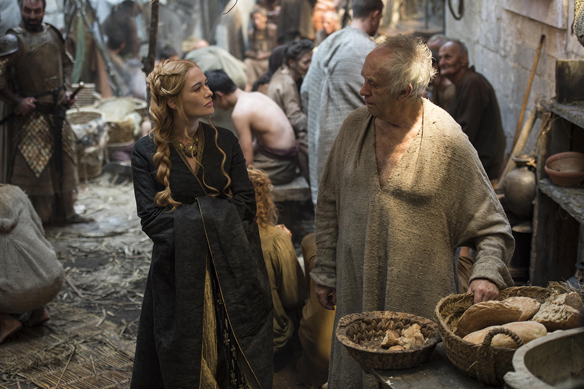 “I want you all to myself,” says Margaery, trying to stroke Tommen’s ego. They also discuss how weird it is that he’s the King now but he’s oddly not guilty about it. Margaery is also laying it on thick in regards to Cersei mothering him. Later, Tommen and Cersei discuss Caster Rock and how she would maybe be happier if she lived there again. Cersei is not amused. She goes to visit Maergery who is joking about her recent sex marathon with her handmaidens. Cersei, seemingly nervous as hell, tells Margaery if there’s anything she needs, she should just ask. Margaery responds by politely asking what she should call Cersei and upon the word “Dowager” being released from her mouth I thought laser beams were going to shoot out Cersei’s eyes.