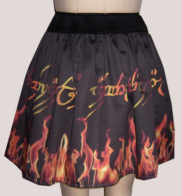 Warning: Skirt not deemed safe for Maiar (Istari or otherwise), dwarves, men, or elves over the age of 5,000. Prolonged use of the skirt by hobbits can result in: hair loss, pigment loss, ocular intumescence, sore throat, coughing, webbed digits, the loss of all friends and family due to crippling mental breaks, and, in rare cases, immortality. Talk to your local wizard to see if the One Ring is right for you.