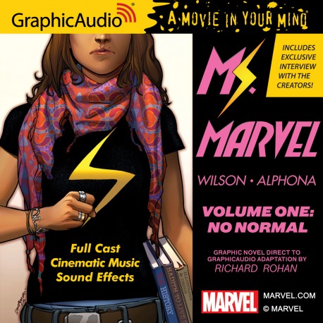 If you haven’t read the first trade paperback of Marvel’s Ms. Marvel (which collects issues #1-5), what are you waiting for? Get on the Ms. Marvel train immediately, for she is absolute awesomesauce. However, if the idea of trades collecting dust on your shelf doesn’t appeal to you, you want a little more life in your comics stories, or you’re visually impaired and love superhero stories, you should check out the Graphic Audio adaptation of Ms. Marvel: No Normal, which is available today! Check out the trailer above, and listen to a snippet below.