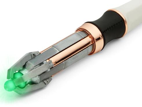 - In other shut up and take my money news: ThinkGeek has unveiled its Sonic Screwdriver Remote Control! You can “rotate [it] clockwise or counterclockwise to adjust the volume on your iPod dock; flick the Sonic Screwdriver up and down to change TV channels or navigate the program guide; and even open your DVD tray by pulling back on the Sonic Screwdriver,” for only $99.95. Will this get me any closer to being the Doctor’s next companion? (via USA Today.)