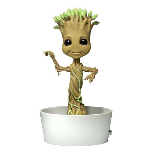Enjoy hours of body-bobbling fun that’s powered by the sun! This Guardians of the Galaxy Dancing Baby Groot Solar-Powered Bobble Head features the adorable Groot in his little pot as a solar-powered bobbler that rocks and wobbles from side to side when it’s exposed to light—it never needs batteries! Measures 6-inches tall!