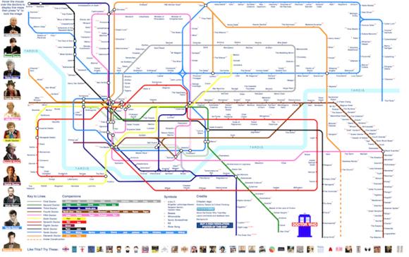 Someone has made an intricate tube map for all of Doctor Who. All of it. A smaller version appears below, so visit Crispian for the full-size, interactive image.