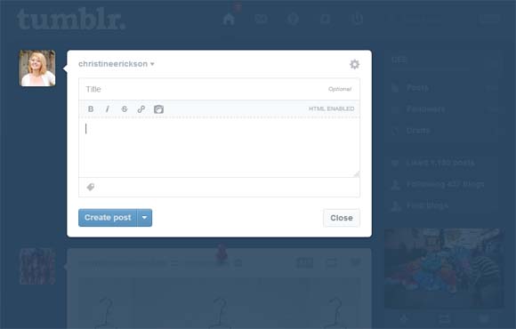Jumping on Tumblr this morning, you may have noticed a change. Starting today, the site is rolling out an updated dashboard. It will allow users to post a photo, video, quote, etc. without having to actually leave the dashboard. You can see what that looks like above. If you have multiple blogs you can access all of them in the same spot. Tumblr told Mashable this is “a step toward making the Dashboard a smaller and more streamlined experience.” I’ve yet to get the updated look, have you?