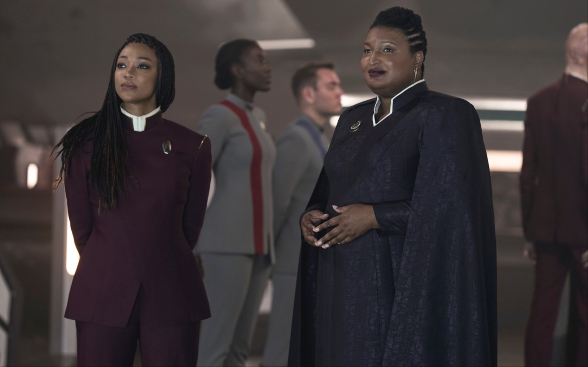 Sonequa Martin-Green, who plays Michael Burnham, told Deadline that the cameo was also a critical moment for her as an individual. About working with Abrams, she said, “She’s a legend in the making, and a civil hero, and she was an absolute delight to work with … and she whipped out some acting chops too!”