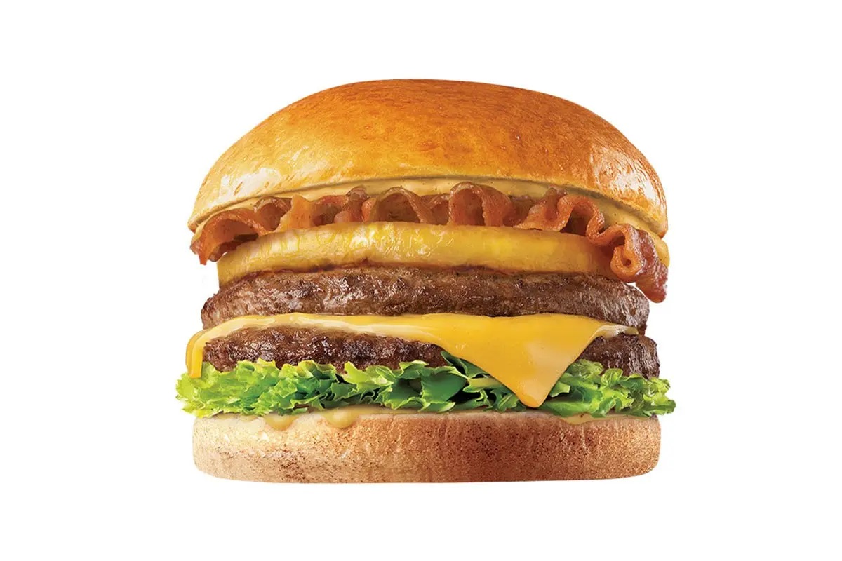 The Amazing Aloha Burger features a beef patty, juicy pineapple, creamy cheddar cheese, and honey mustard dressing. You can also add bacon slices to your burger if you want.