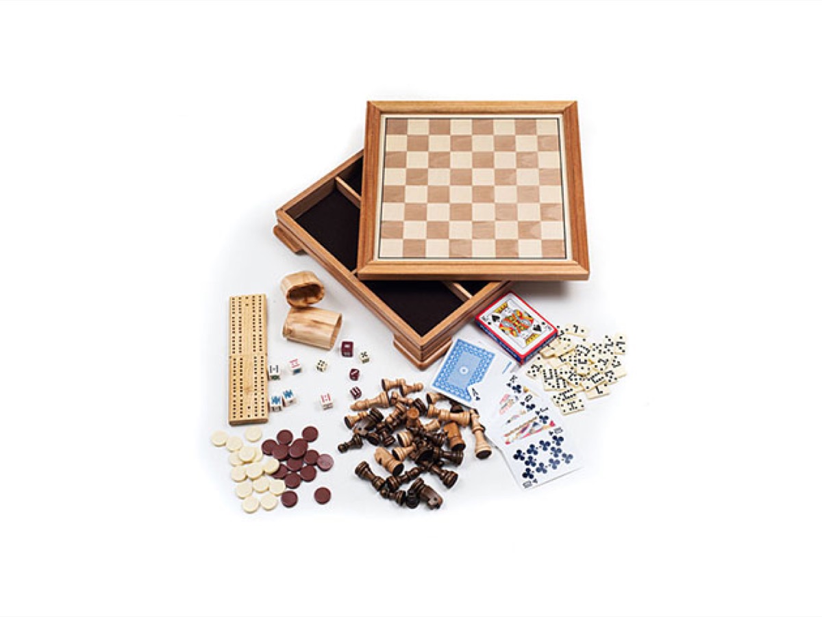 Deluxe 7-in-1 Game Set Chess Checkers Backgammon Cards Poker Dice: Add a few more options to game night without needing a whole extra set of shelves for them. This 7-in-1 set includes chess, checkers, backgammon, cribbage, dominos, playing cards, and poker dice. Use code SAVE15TODAY to get an extra 15% off.