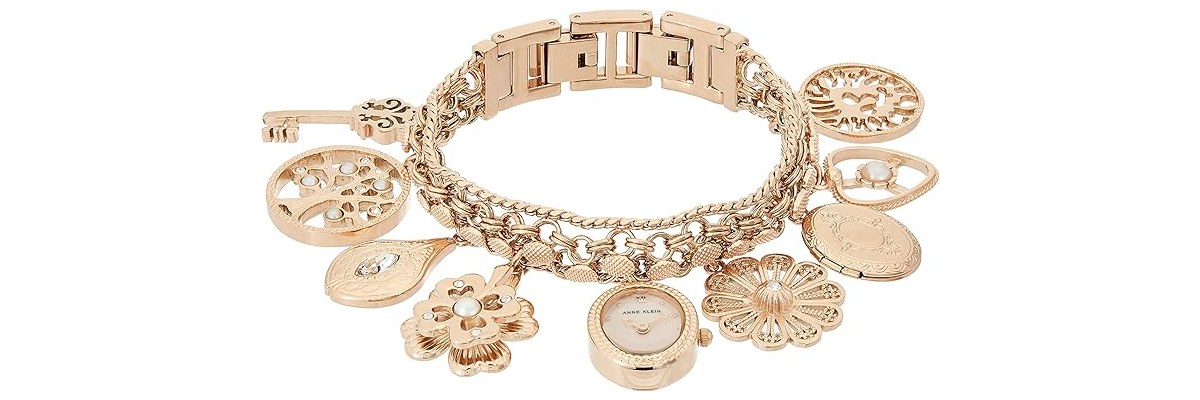 Anne Klein Women’s Premium Crystal Accented Charm Bracelet Watch