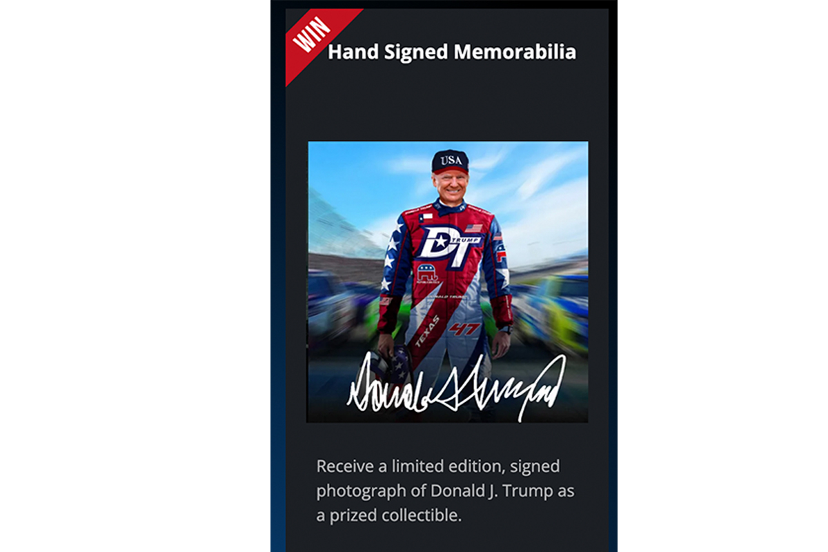 Okay now that signature was bad before but now has gotten so bad that I don’t even know how to explain it. That says Samuel Adams and you cannot convince me otherwise. And you can own Samuel Adams’ signature too if you buy this NFT of Donald Trump cosplaying as a NASCAR driver. Why? I don’t know man, why are you trying to find logic in these things?
