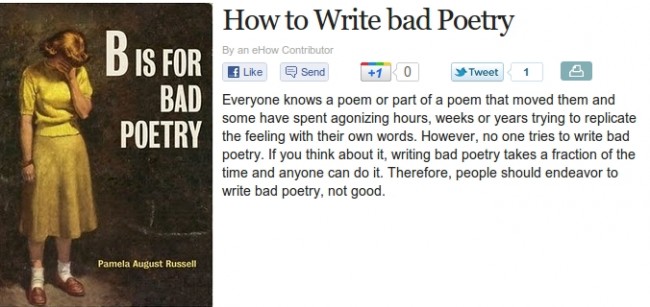Use words that have lots of letters but you have no idea what they mean. Look in a dictionary for particular long and complicated words and include them in your poetry. It also helps if they rhyme, but anything goes in bad poetry.