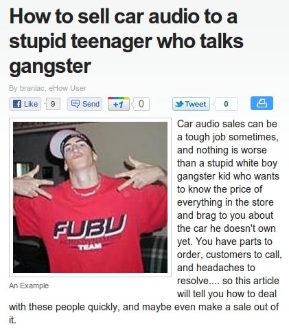 Ok so the gangster talking kid is hanging around your showroom, so now what? You have to understand that these people have jobs and get paychecks too, so if he is enticed by something he will blow his entire paycheck on it– no problemo. If not, he is just there to talk to you about things he will “get in like a month” because it makes him feel like a millionaire. The next step will help you identify why they are in your store, and if you can actually make this encounter into a sale.
