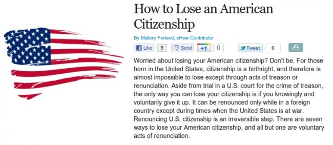 Commit treason. If you want to forfeit your U.S. citizenship, remember that treason convictions usually result in prison sentences. Committing treason is the only way to have your citizenship involuntarily taken from you. Acts of treason include armed attack against the U.S. government or sabotage for its ruin. A U.S. court must find you guilty of treason before your citizenship can be revoked.
