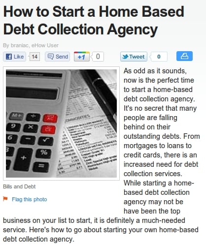 In addition to a computer, a home-based debt collection agency should have a dedicated telephone line (it’s much more professional than having 5 year old Joey answer the phone), a fax machine, and copy machine