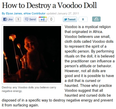 Take the doll to a remote stream or forest and leave it there. Bring an offering of fruit and some coins. When you leave the doll, ask the spirits of the water or earth to transform the doll’s negative energy.