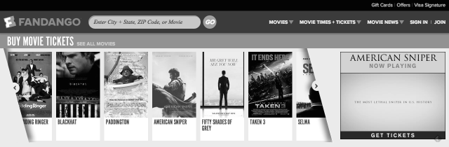 See, I took a screenshot of Fandango's front page and turned the saturation all the way down, it's a joke.