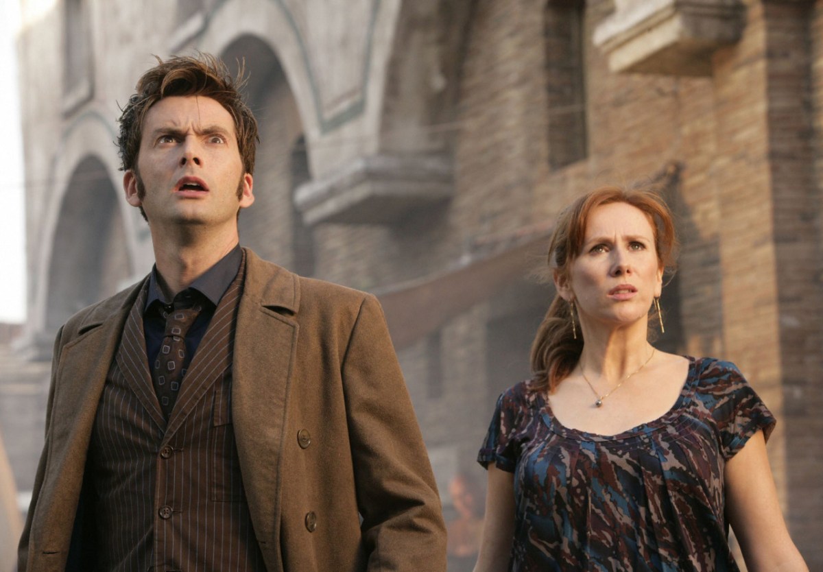 “Turn Left” sits squarely near the end of Donna’s tenure, and it’s not exactly full of fun, classic Doctor Who hijinks—instead it functions as the culmination of Donna’s tenure and setup towards a multi-series crossover. But despite the episode’s grandiose scale (it’s the first of a three-parter, ending with “Journey’s End”), it’s also one of the most Donna-centric of season four. “Turn Left” follows Donna as she struggles to navigate a disorienting reality, which has brought on a collapsing universe.