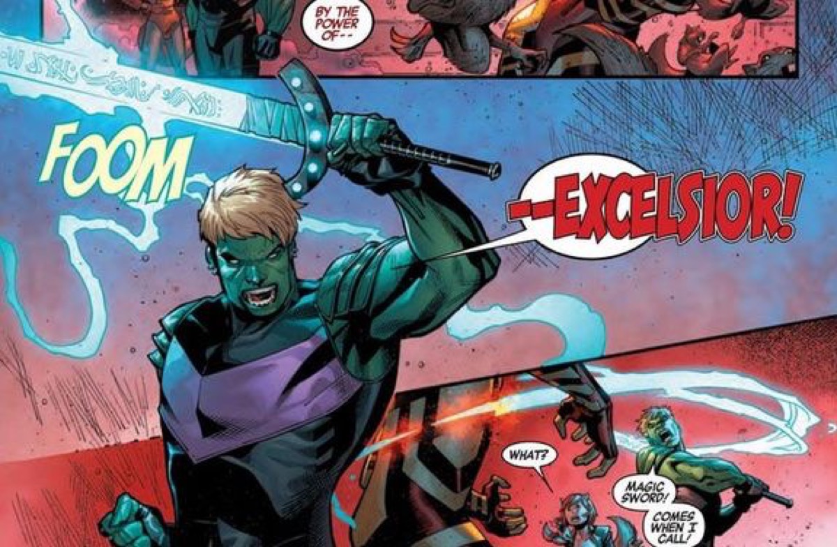 In his heroic form, consisting of green skin and muscled stature, Teddy Altman’s appearance seems to be a youthful homage to a certain green giant. However, his origin story and personality are far from the Incredible Hulk’s, as Teddy is a shapeshifter from another planet, with half-Skrull, half-Kree heritage.