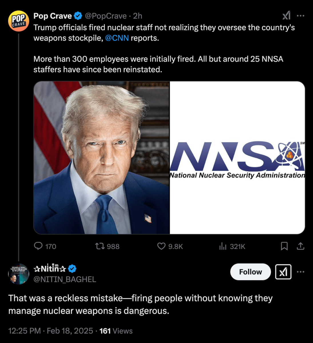 The White House fired more than 300 employees of the National Nuclear Security Administration (NNSA) recently, and apparently didn’t realize what it had done. The terminations were quickly taken back when it became clear what happened.