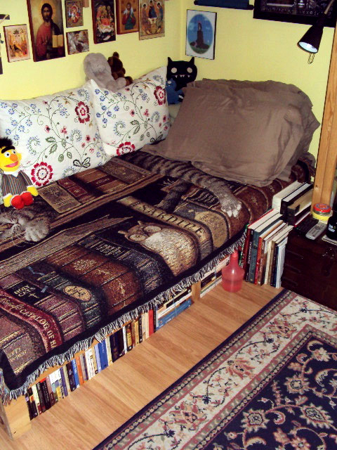 My own room has a similar feel yet is just a portion of the kind of things seen here so I’m quite impressed by all Logospilgrim has arranged and amassed. Though I’m having quite a fun time imagining Snape with a stuffed Bert on his bed.