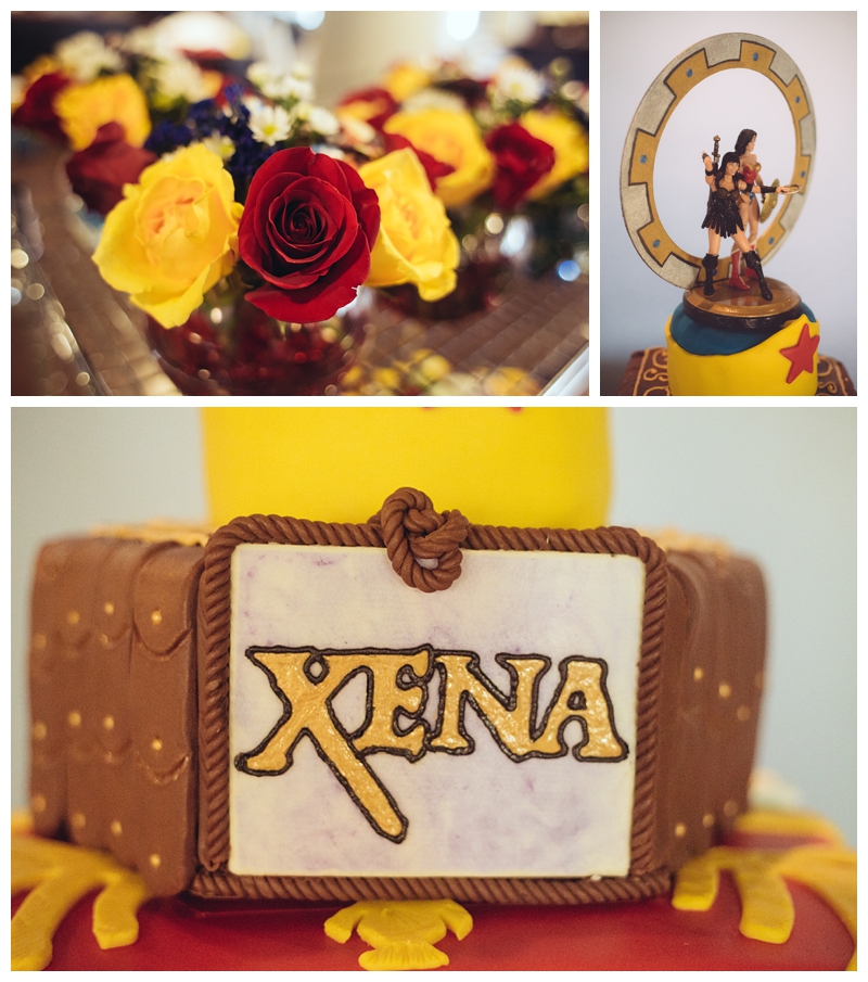 A Xena and Wonder Woman Wedding Cake at a Gorgeous Superhero Themed Wedding