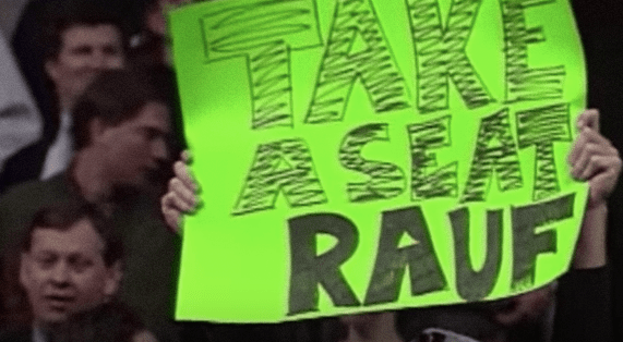 A Denver Post poll showed that 72% of Nuggets fans were opposed to Abdul-Rauf’s protests and, in the most publically egregious example of the response, two idiot shock jocks from KBPI and one of their idiot listeners barged into the mosque down the street from where I lived and played the “Star-Spangled Banner” on a bugle. (They were fined.)