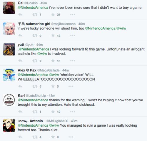Hilariously, the casting news has also upset a lot of people (most likely, if I had to guess, due to Wheaton’s open distaste for Gamergate) who’ve taken to complaining at the Nintendo America Twitter account about it.