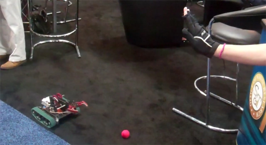 Now, this might seem a little unnecessary since joysticks, touchpads, and newer devices like the Kinect are already fairly entrenched as electronic controllers. However, seeing it in action is more than a little impressive. Read on below to see the glove in action, controlling a robot and retrieving a ball.