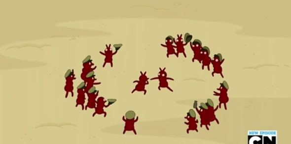 You can watch a clip of the “controversial” character over on Kotaku; essentially, the episode featured Finn’s journey to the military boot camp “Dentist,” where he meets an ant named Leftenant Gamergate. Not surprisingly, many fans thought the Leftenant’s name was in reference to the Internet’s “Gamergate,” an online movement which has harassed female game developers and critics for nearly four months now. Co-executive producer Adam Muto clarified: