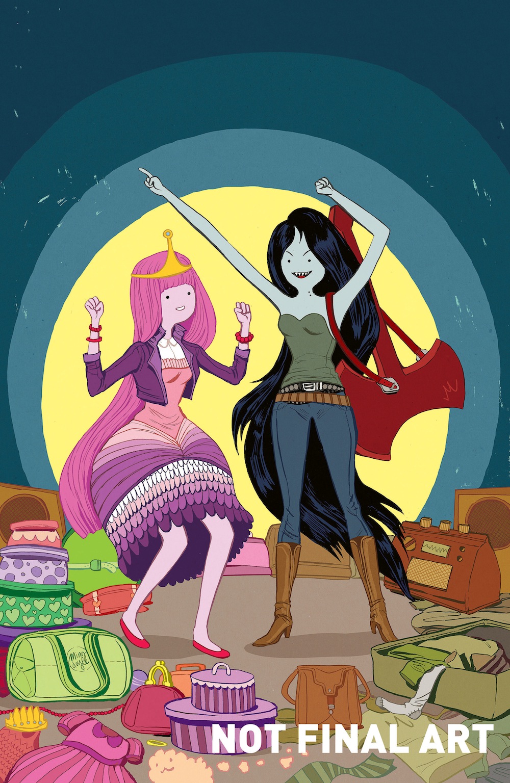 Boom! Studios is in charge of the Adventure Time comics, and frankly I’m in love with the way they’re putting them together, by hiring not from the paper comics establishment but getting Ryan North of Dinosaur Comics to write (Shelli Paroline and Braden Lamb are drawing). It’s paid off, with the comic going to multiple printings. Boom! announced yesterday that they’d be playing on that success with by giving Marceline (and Princess Bubblegum) their own comic miniseries starting this July. And not only are we getting a comic about Adventure Time‘s infamous are-they-saying-what-I-think-they’re-saying? lady couple, it’s going to be written by the internet’s own Meredith Gran, of Octopus Pie. Here are some of the awesome covers for the series, by awesome ladies: