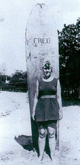 Robinson says that Christie’s introduction to surfing began when in 1922, Archie was hired to organize a world tour for the British Empire Exhibition. Their travels took them first to South Africa. There, they started learning prone surfing, which Christie seemed to enjoy, except for the times it was “occasionally painful as you took a nosedive down into the sand.”