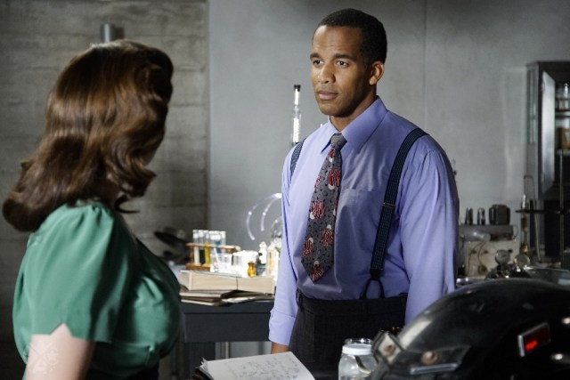 I think she sees in Wilkes someone who, given his race and given the time, the fact that he has been able to create this life for himself as an exceptional scientist in an environment where he had to really fight to win his place there, shows to her a strength of character that she can relate to, that she saw in Steve Rogers, that she sees in Sousa, as well, and that’s what interests her. And I think it’s helped by the fact that he’s really good looking. [Laughs.]