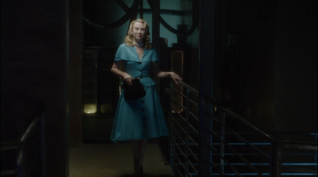 Back at the movie set, Whitney heads to her dressing room to wash off her makeup from a day’s work, and her husband Calvin’s waiting for her there with the bad news about the “council” shutting down Isodyne. Now, we begin to discover that Whitney’s the brains in this operation; she understands the value of the “zero matter” they’re developing, a form of energy that could be more valuable than “the steam engine” for society. She’s understandably upset about the council shutting down all of Isodyne’s hard work.