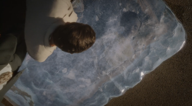 Next, we cut to Sousa in LA, complete with Hawaiian shirt and a palm tree background. A new character who seems to be Sousa’s colleague in LA tells him about the body of a dead woman found in a lake – that’s the episode title, too (“Lady in the Lake”). The body is also encased in a huge block of ice … except this is LA, shouldn’t it be a little warm for the lake to freeze? Seems as though some mysterious forces (e.g. dry ice) could be at work here. Sousa’s coworker believes it’s part of a string of mysterious homicides he’s been uncovering, although the ice aspect seems to be a fun new angle.