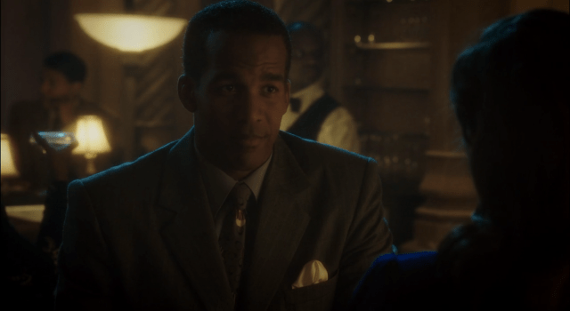 Sousa and Agent Carter discuss the address that Dr. Wilkes gave them tonight; it’s a hotel bar, and a “hot spot” for the “colored crowd” according to Sousa, who brags that he once saw Ella Fitzgerald perform there. But what about the part where Sousa and Violet had a date tonight – the date that Violet invited Peggy to attend as well? Yeah, that’s not gonna happen, because Sousa accidentally drops a small box with an engagement ring in it, and when Peggy sees it, she realizes that she probably shouldn’t crash that date at all. Yikesville.