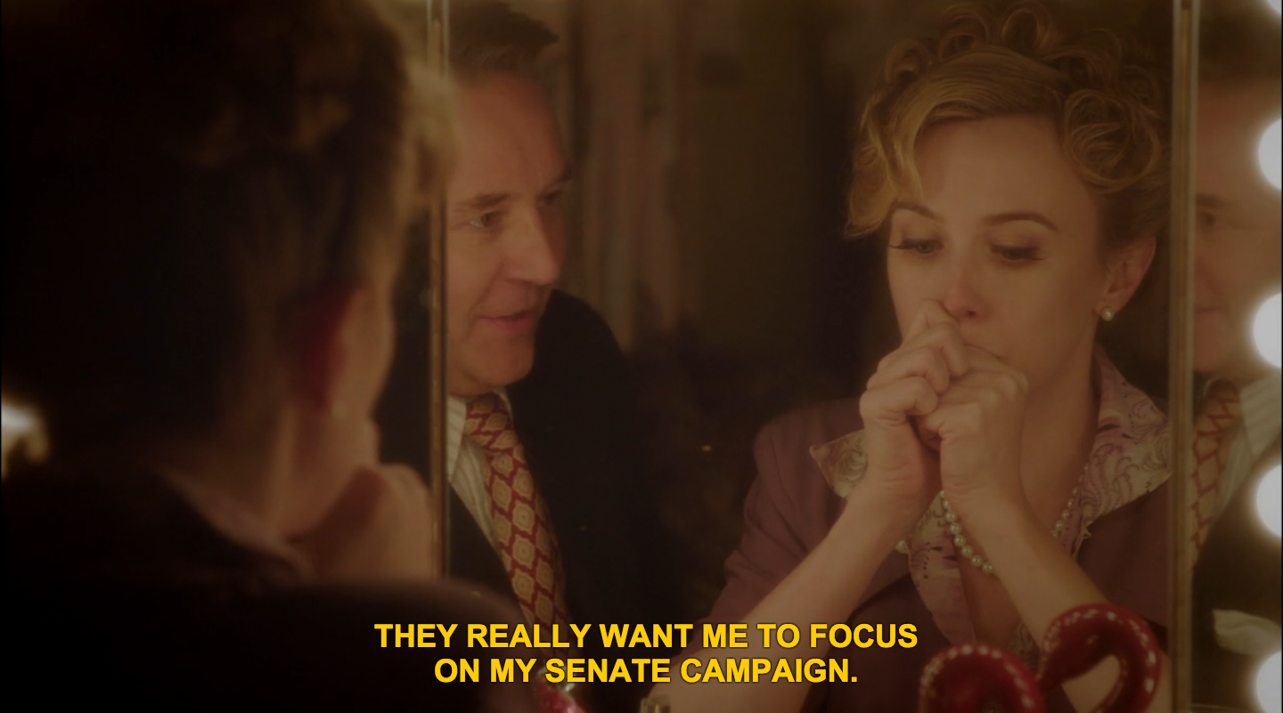 Calvin excitedly tells her that the council wants him to instead focus on running for Senate. Whitney smiles and tells him she loves him, that he’ll be a wonderful senator. But the smile doesn’t reach her eyes.