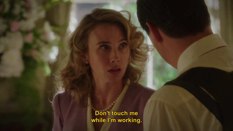 Howard Stark plunges this whole moment into awkwardness by remarking that Peggy sure does end up in life-threatening situations a lot. “Maybe the problem is you,” he tells Peg. She gives him a thin-lipped smile and walks out of the room without another word. Of course, Howard doesn’t know that Peg’s had a rough few months. Still, why’s he got to be such a jerk all the time?