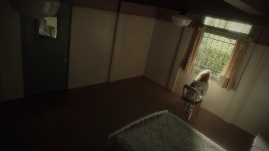 With five minutes left in the show, we return to Whitney Frost, who’s imagining her dead husband is back alive, consoling her. She pictures herself in a beautiful bedroom. But in reality … she’s in an asylum.