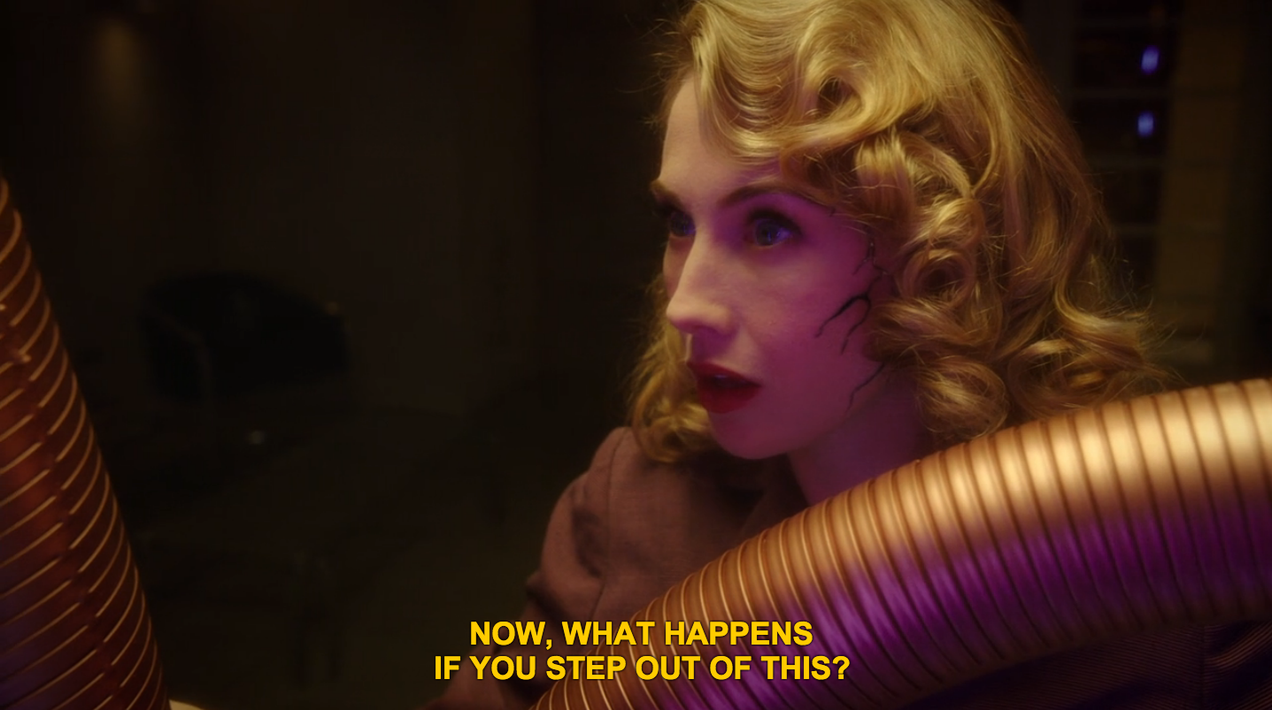 Ana Jarvis and Jason Wiles are back to working on the containment chamber together. Peggy checks in on them; romantic tensions between Peg and Jason seem to have stalled, to Jason’s dismay (and mine). Meanwhile, Jarvis has fixed the transponder for Dottie’s tracking device. Unfortunately, Dottie’s signal seems to be out of range, which leads Peg down another distracting rabbit-hole. Jason interrupts, as he’s fed up that Peggy seems more interested in preserving the life of a fugitive than caring about his situation – especially since he’s facing something that he describes as “worse” than death. But what, exactly? He refuses to elaborate; he doesn’t seem to want to let anybody in on what he knows about zero matter and how it’s affecting him.