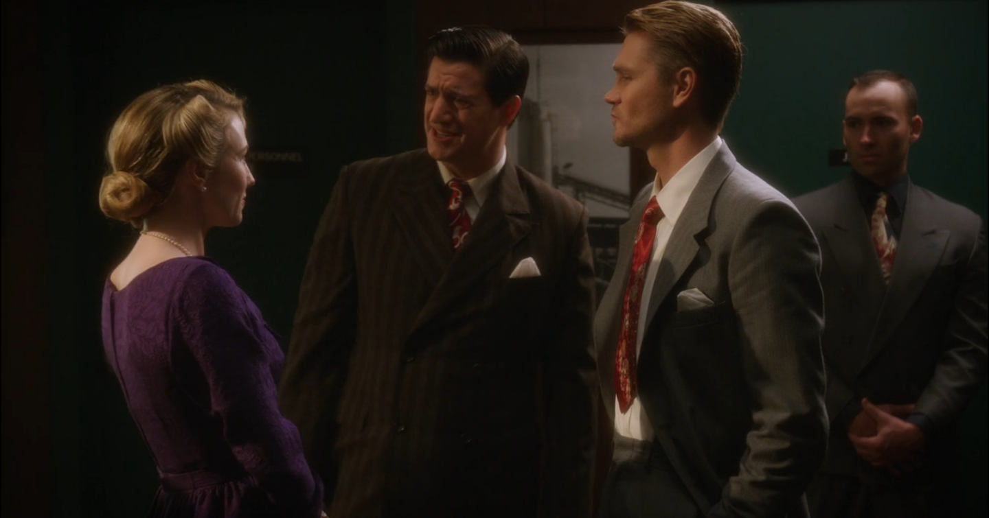 Peggy walks forward and drops off the briefcase full of uranium rods. Joseph bends down to check on the contents. Whitney shames Peggy for not working with her: shouldn’t women be working together? Peggy reminds Whitney about that whole shooting-Ana thing. Not exactly proof of Whitney’s belief in the “sisterhood” of feminism! “Occasionally sacrifices must be made,” Whitney responds.