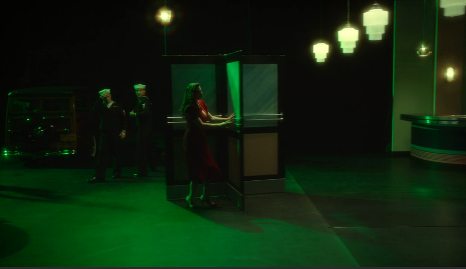 Michael soon fades away and Peg finds herself on a strange theatrical set that looks a little bit like something out of Singing In the Rain. It looks gorgeous, so … well, here, have some pictures.