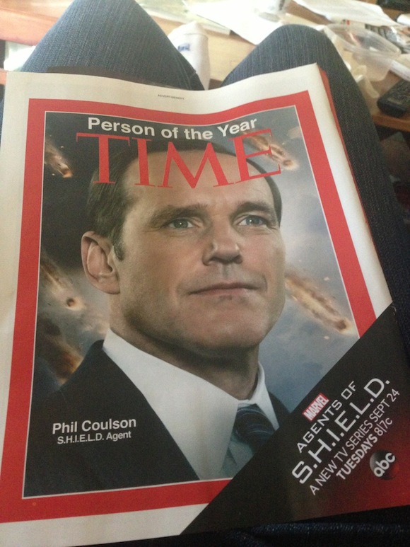 Well, technically he’s on the back cover (according to PPYAJuneBug on Tumblr), in an ad for Agents of SHIELD, but, good gag Marvel PR. Good gag.