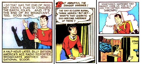 There have been a fair number of characters using the name Captain Marvel. So this is part one of our look at the topic. We are starting with the original character to use that name, Billy Batson, a character who often has simply been called “Shazam” and whose successor took that as his official name in 2006. In the “New 52” universe of DC Comics, Billy and his related characters were recently rebooted and now he is simply called Shazam. We’ll talk about the Marvel Comics characters called Captain Marvel in our next piece. Shall we begin?