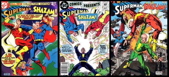 In 1974, Superman and Captain Marvel were going to have a crossover. But Elliot S! Maggin and editor Julius Scwartz discussed the matter and decided that it didn’t quite work. Maggin believed it was better to keep Billy Batson and his cast of characters in a world – later called Earth-S – that was separate from the DC Universe (I definitely agree). He thought that the atmosphere of the Shazam heroes involved a different sort of suspension of disbelief and was simply more whimsical, while DC heroes were becoming increasingly involved with social issues, darker stories and were geared towards an older audience.