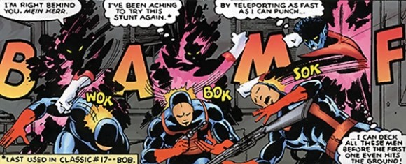 Along with the brimstone smell, crack of flame and smoke which appeared whenever Nightcrawler teleported, the now-famous “BAMF” sound effect was added. It was later explained Nightcrawler teleported by displaying himself into another dimension and then returning to Earth at a different point in space-time almost instantly. The smoke and smell were the atmospheric conditions of this other dimension. The BAMF sound was the result of air rushing in to fill the gap where Nightcrawler had once been standing or air being shoved out of the way as he made an entrance. Isn’t science cool, kids?