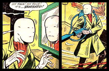 Bart Magan was a much more obscure connection. He only appeared in one comic, Detective Comics #319 (1964), where he showed up as the faceless criminal who called himself, wait for it… Dr. No-Face! The story featured scientist Paul Dent inventing a rejuvenation ray that could smooth out wrinkles and completely remove scarring. A criminal named Bart Magan used the device on himself, hoping to remove a facial scar that made it easy for people and authorities to recognize him. But he messed up, and the ray smoothed out his entire face, leaving it blank. Magan then embarked on a new criminal career as Dr. No-Face, allowing people to believe that he was actually Dr. Paul Dent, who had accidentally removed his own face and gone insane. But Batman and Robin stopped Magan and he went to jail, where he no doubt creeped out prisoners who wondered how he could speak, breathe and eat without the presence of a mouth and nostrils. Not to mention the whole being able to see bit.