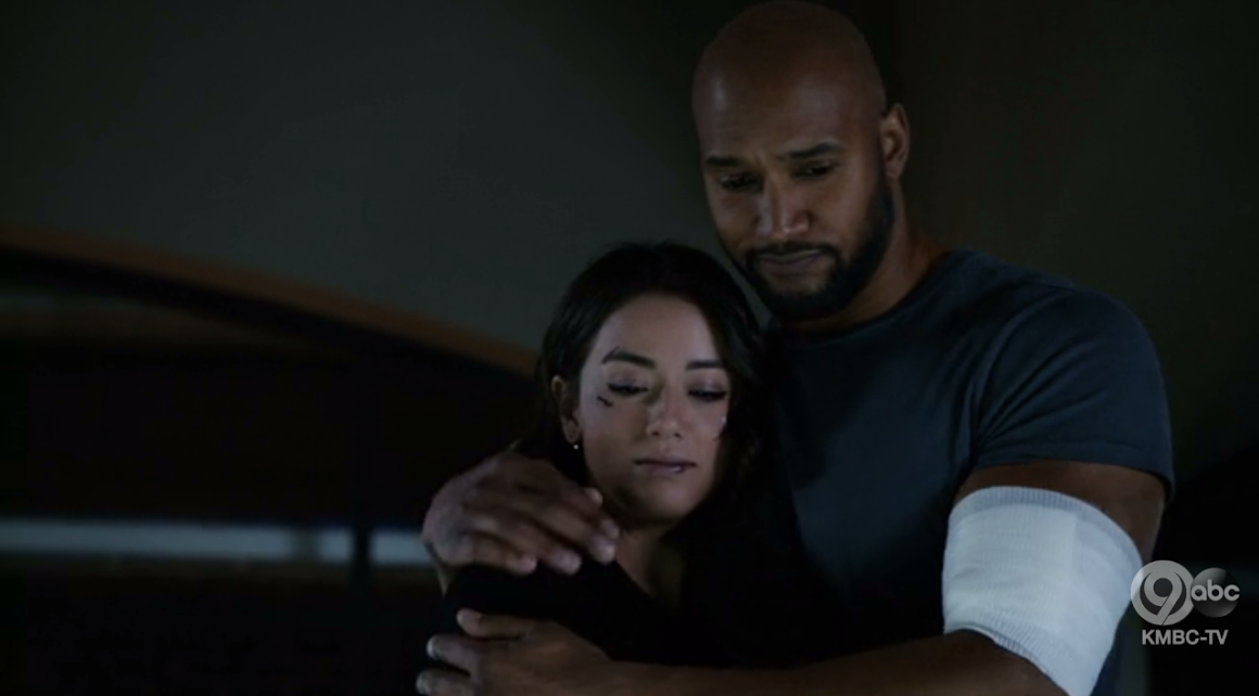 Along the way James drops all kinds of tidbits about the “mess” Lincoln was in the past, which eventually leads to him coming clean with Daisy about the fact that he almost killed his last girlfriend in a drunk driving accident. It’s a good scene that not only calls out that Lincoln is intentionally trying to be “Mr. Perfect” (i.e., Boring) around Daisy, but also makes him sympathetic and … interesting? … this week? I know, I was confused too. But pleased! Hopefully AoS can keep that trend going.
