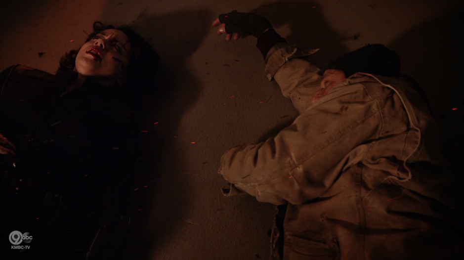 Proving that sometimes the future can be changed, Charles zaps Malick with a future-vision of his own (probably his own death given how rattled he is afterwards), giving Daisy time to fling him into a wall and force him to retreat. Relieved to have finally “made a difference,” Charles asks Daisy to look after his daughter just in case she turns out to be Inhuman, too. The two share a prophetic fist-bump, flashing forward to that blood-splattered spaceship and floating cross from the mid-season premiere.