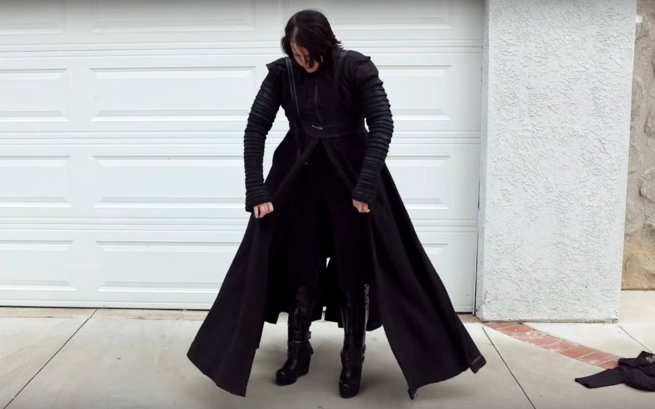 Bright found out that a set of all black robes does not a Kylo Ren make. Her costume is made up of several layers of robes, skirting, and other bits of clothing. The explanation video clocks in at five and a half minutes long, which doesn’t seem like a lot, but when you’re watching her put on all these layers, it kind of sinks in just how much detail goes into a costume like this.