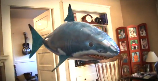 There are currently two models of Air Swimmers, Clown Fish and Shark, which are made of reusable mylar and controlled via IR remote. Sadly, the makers of this ingenious toy seem to have underestimated its potential and aren’t taking orders at the moment. Hopefully, that will change soon.
