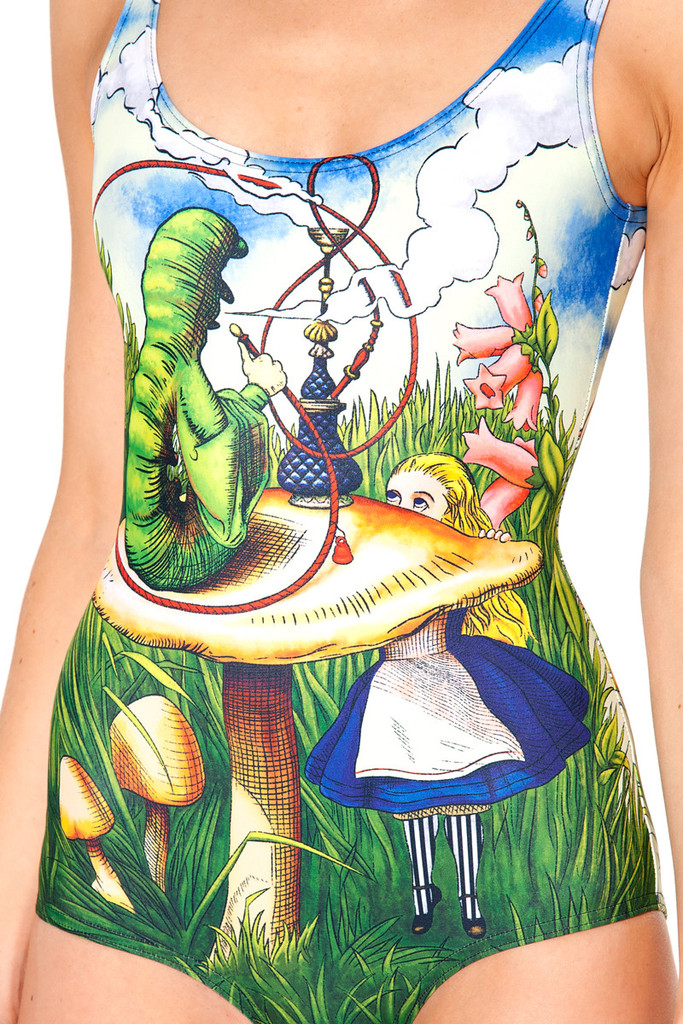 Black Milk is now selling these two bathing suits based on book illustrations from Lewis Carroll‘s Alice in Wonderland*. You can check out the second under the jump.